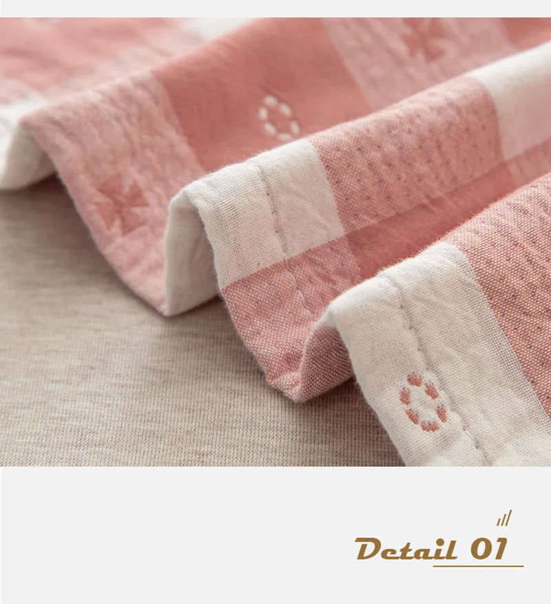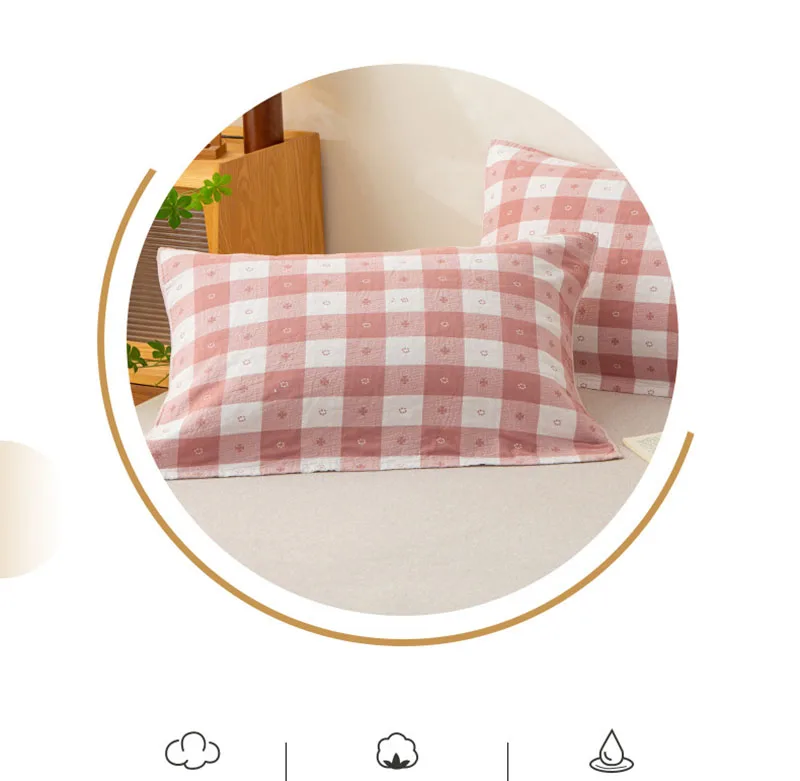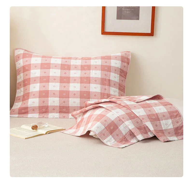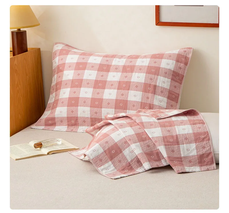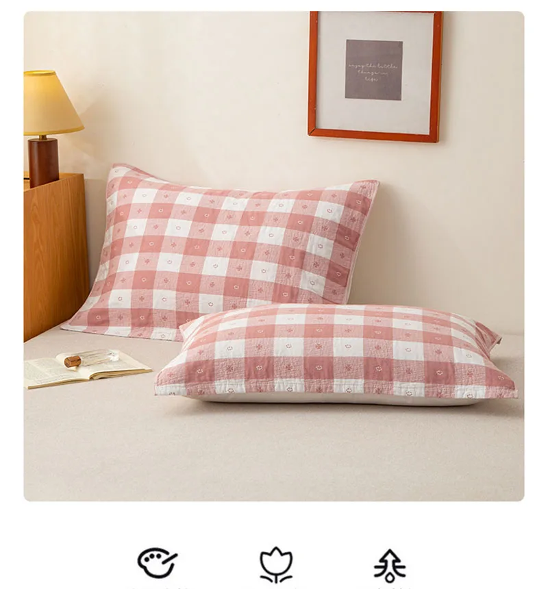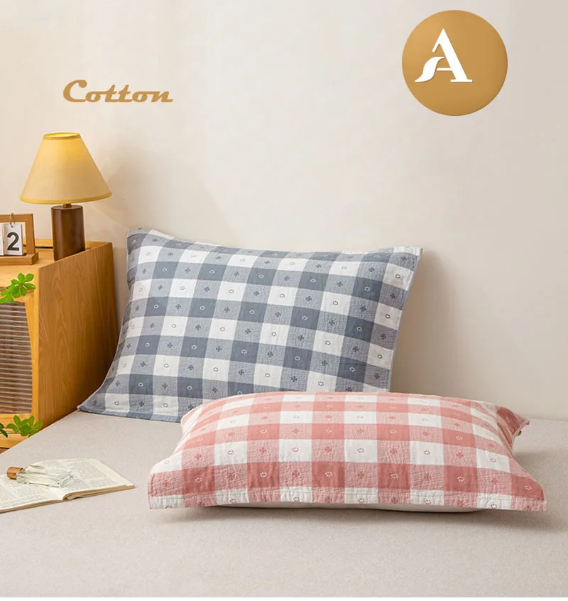 A-Class Pure Cotton 3-Layer Gauze Pillow Towel Anti-Oil Striped Printed Pillow Cover for All Seasons Durable Non Fading Bedding