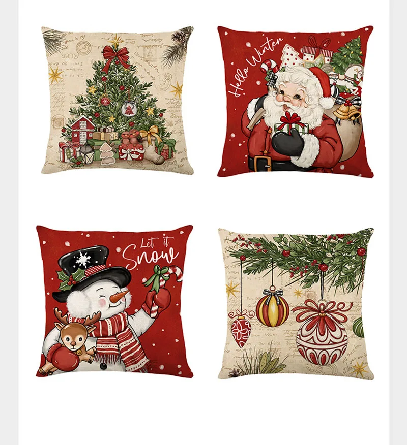 Christmas Printed Pillow Cover Without Core 4 Pcs Polyester Bedside Pillowcases for Holiday Comfortable Home Textile Accessories
