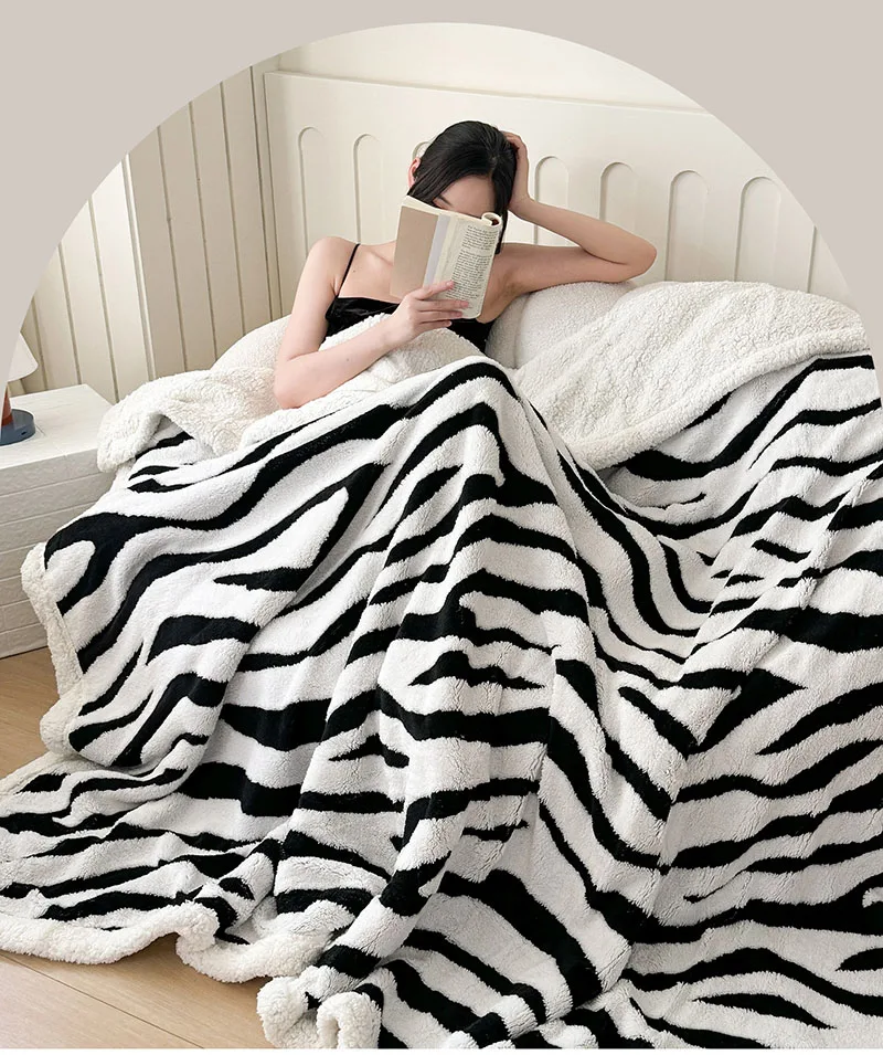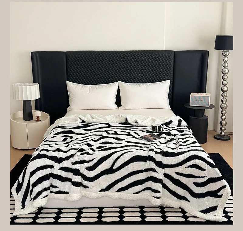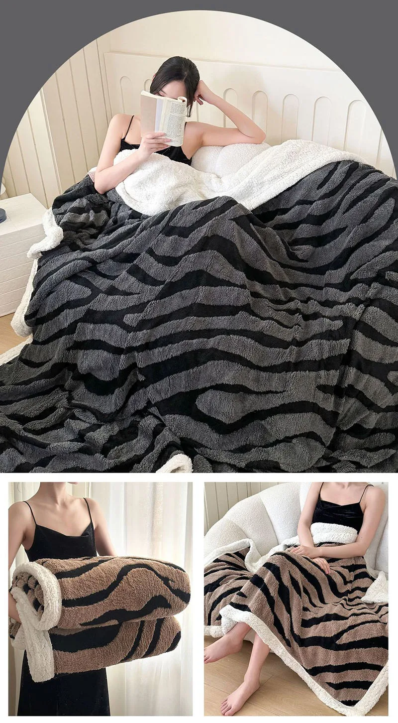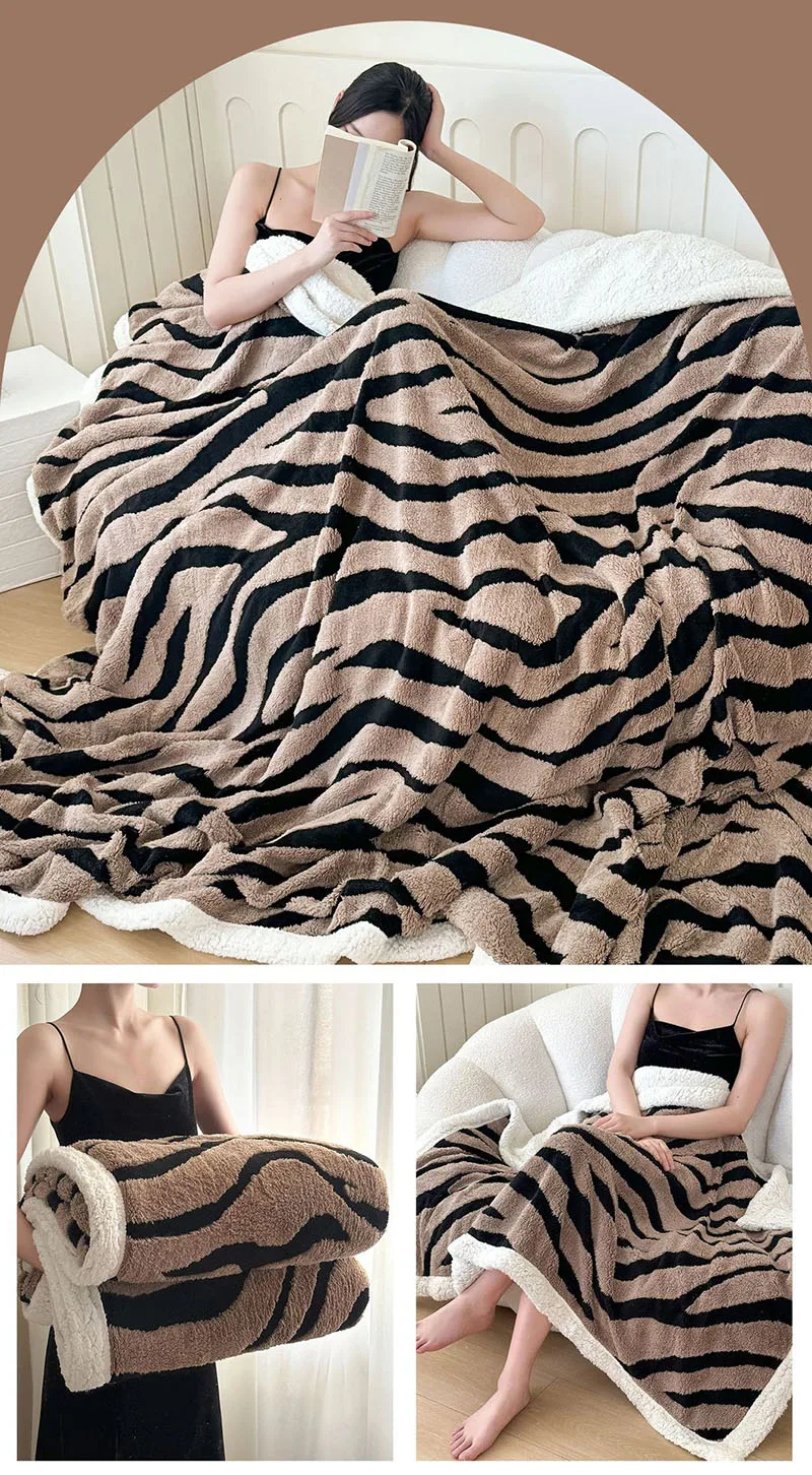 Double Layered Zebra Patterned Jacquard Blanket Skin Friendly Taffeta Velvet Blanket for Office Nap Super Soft A-Class Bed Decor