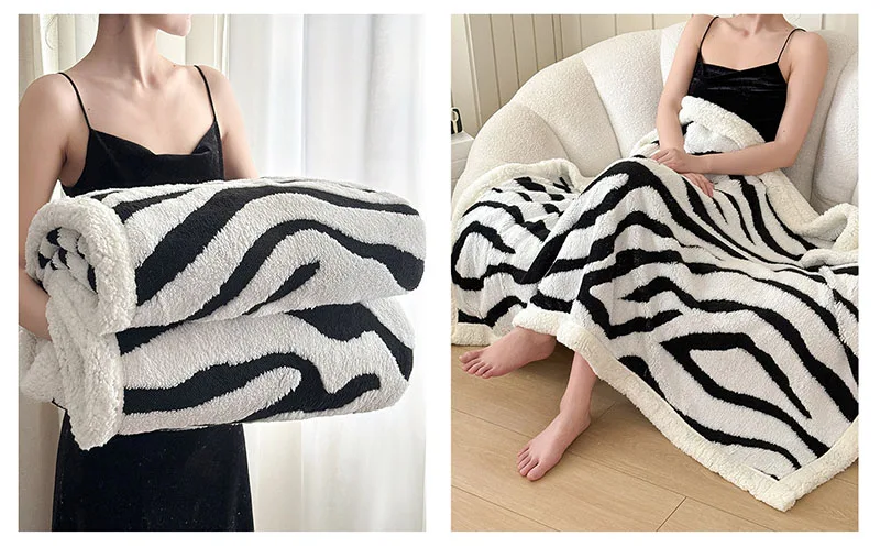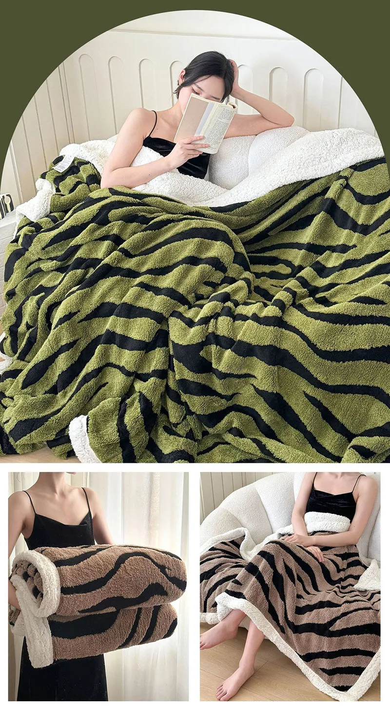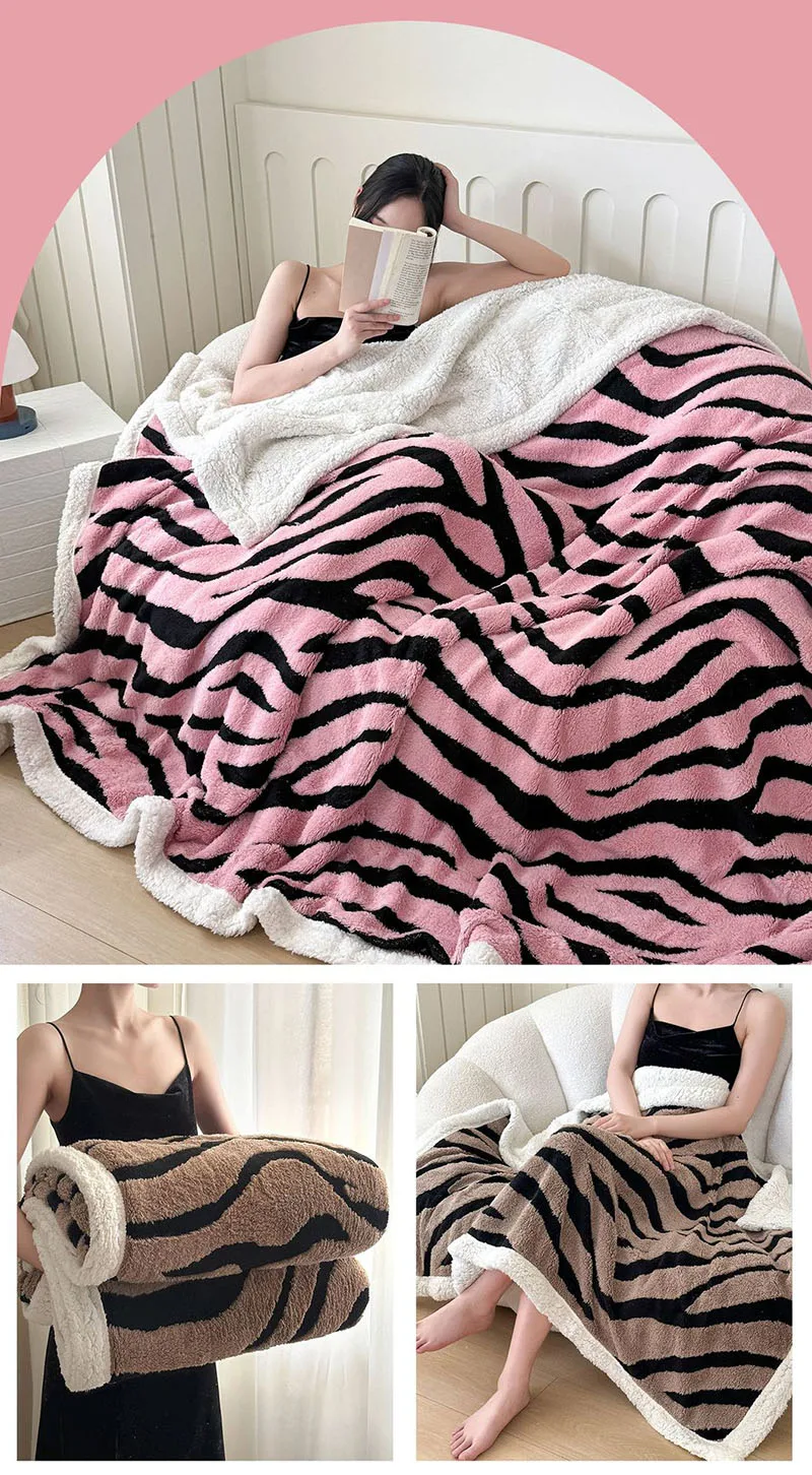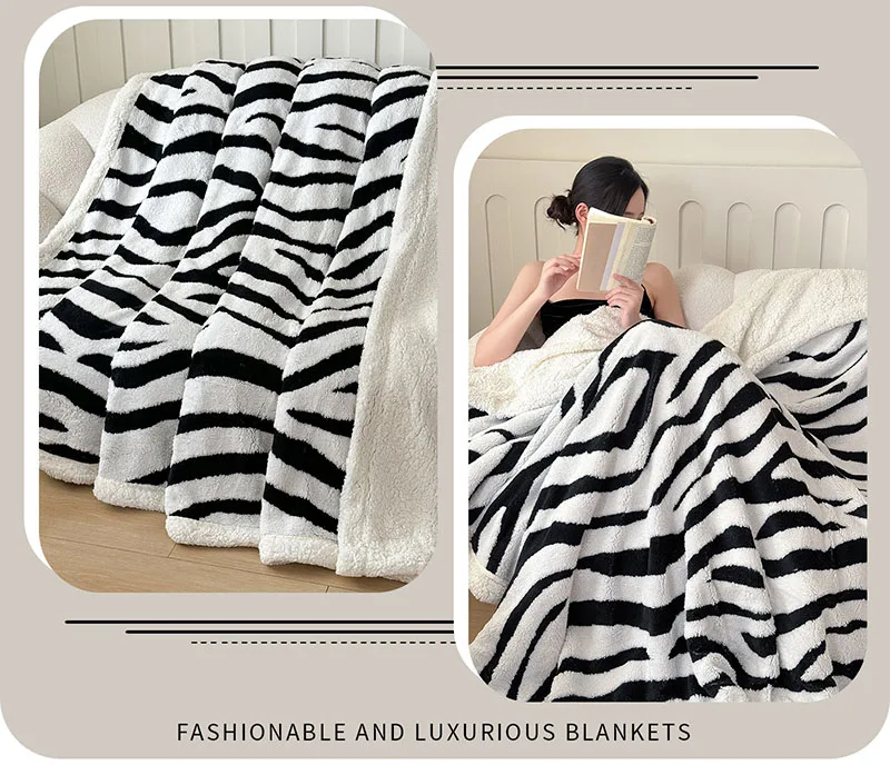 Double Layered Zebra Patterned Jacquard Blanket Skin Friendly Taffeta Velvet Blanket for Office Nap Super Soft A-Class Bed Decor