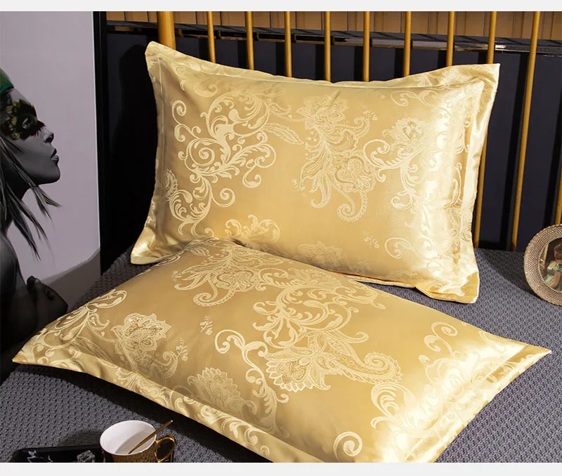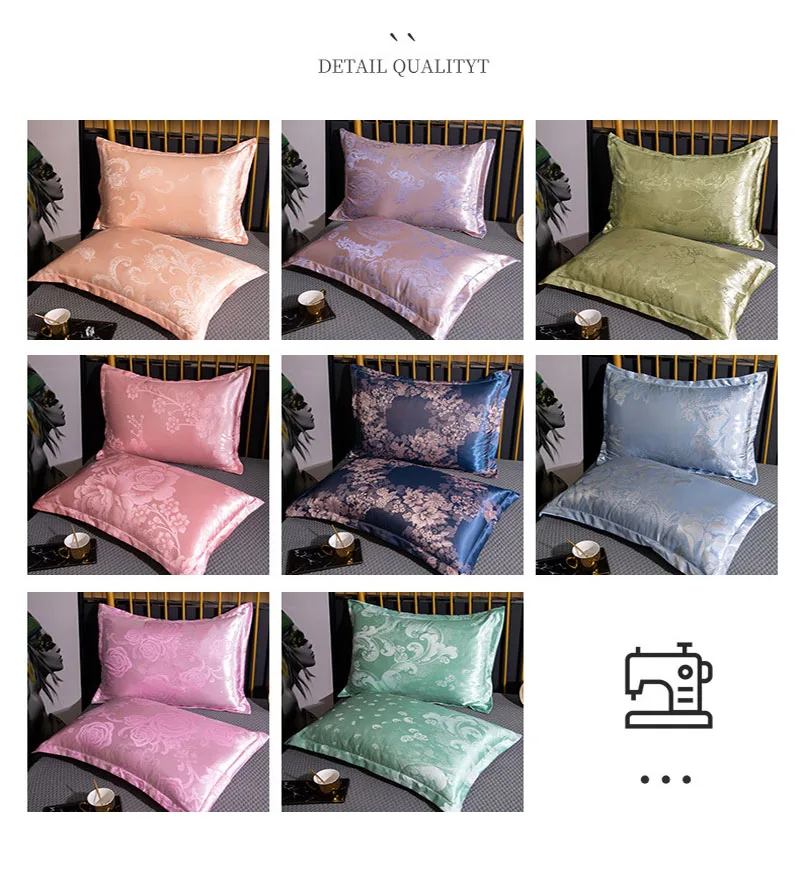 European Satin Jacquard Pillowcase Exquisite Breathable Solid Pillow Cases for Hot Sleepers Summer Autumn Cooling Feel Bedding