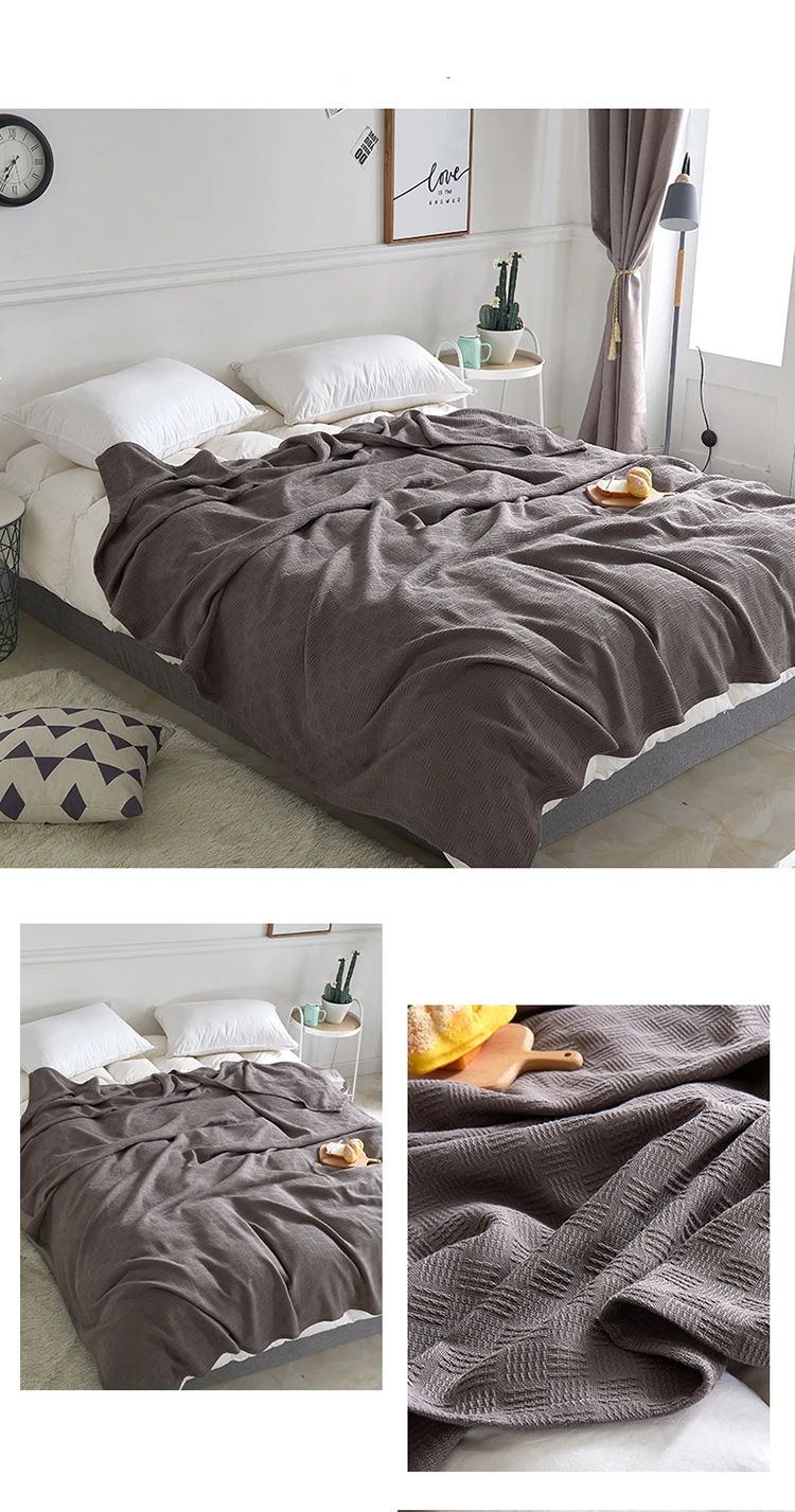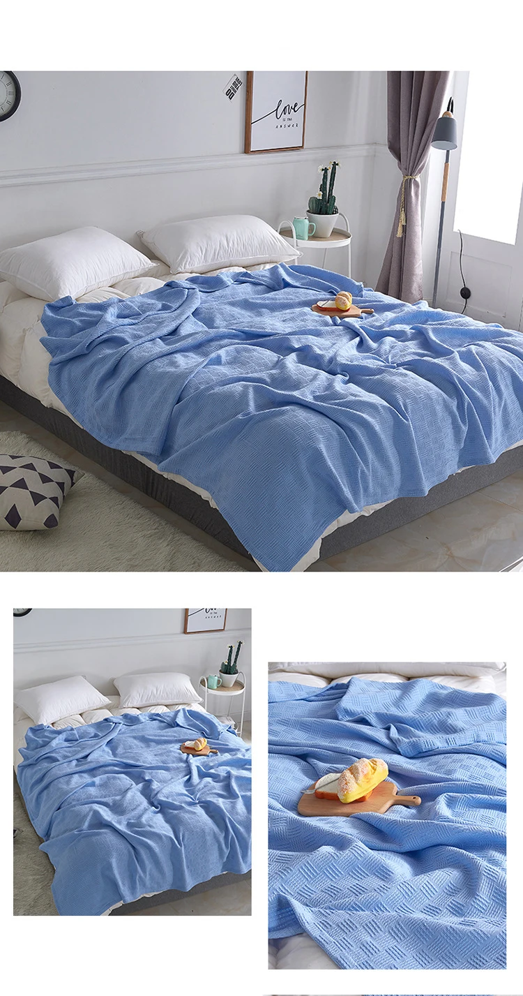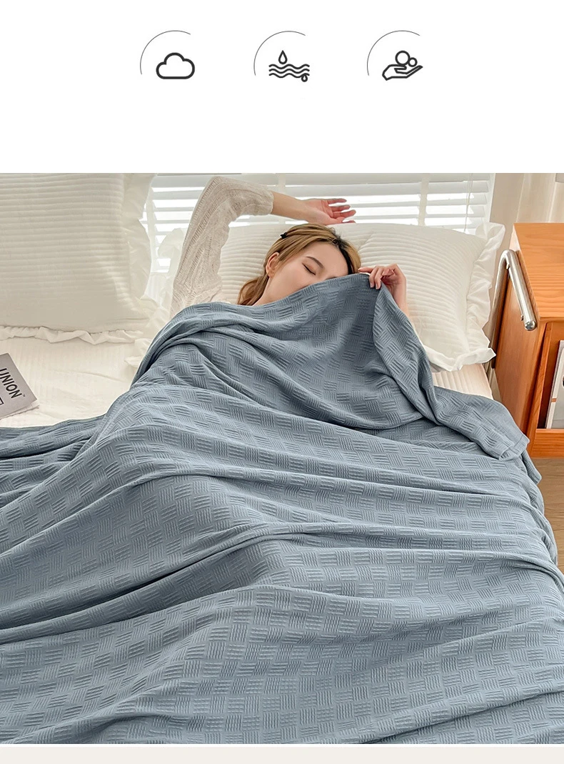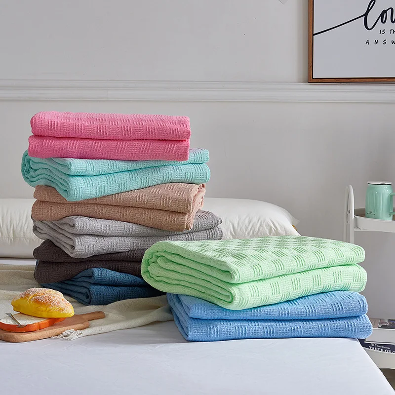 High End Breathable Office Blanket Summer 100% Cotton Waffle Towel Quilt Skin-friendly Machine Washable Single Picnic Blanket