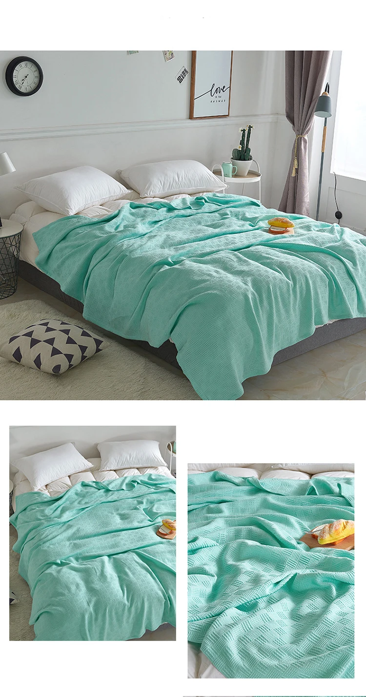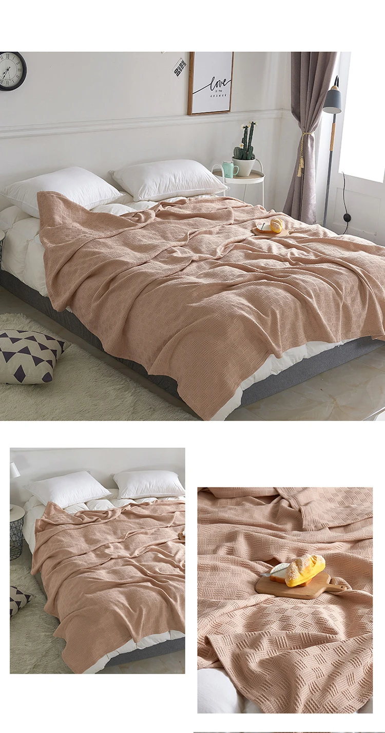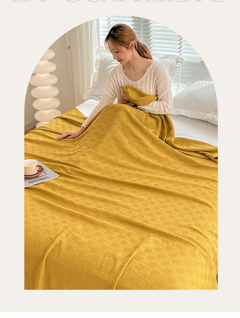 High End Breathable Office Blanket Summer 100% Cotton Waffle Towel Quilt Skin-friendly Machine Washable Single Picnic Blanket