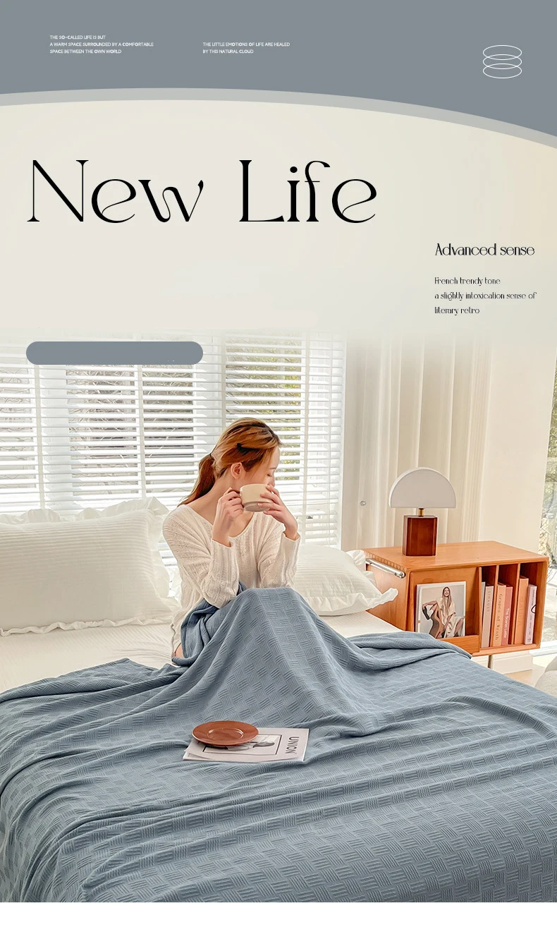 The blanket has solid color design and fine workmanship. which looks very simple and delicate.