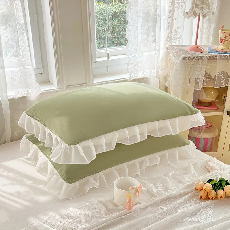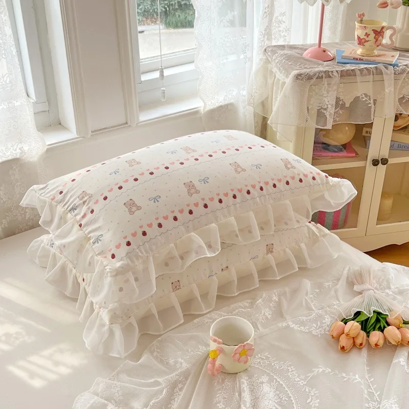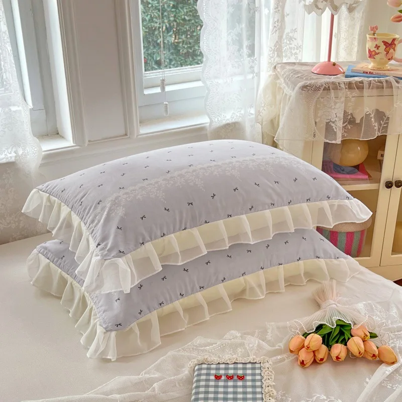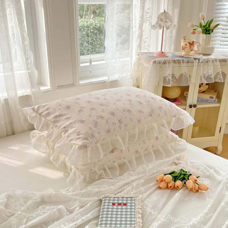 Korean Lace Floral Print Pillowcase Princess Skin-Friendly Knitted Cotton Pillow Cover All-Season Soft Pillow Case for Single