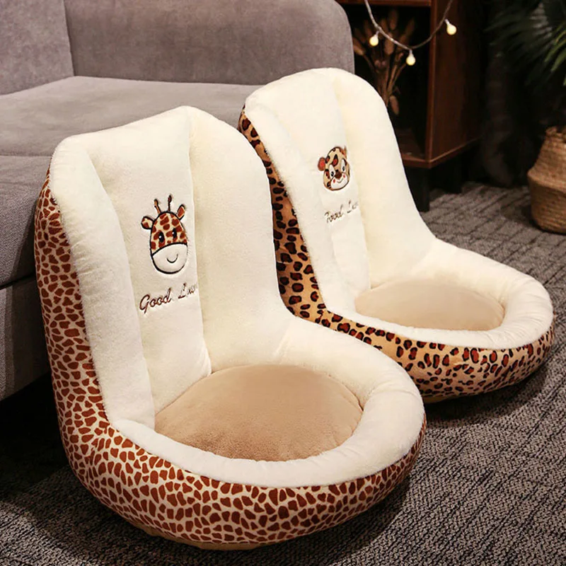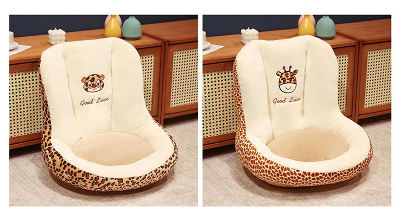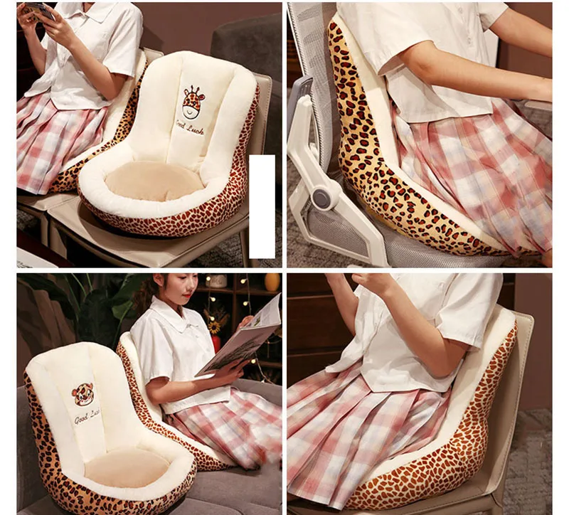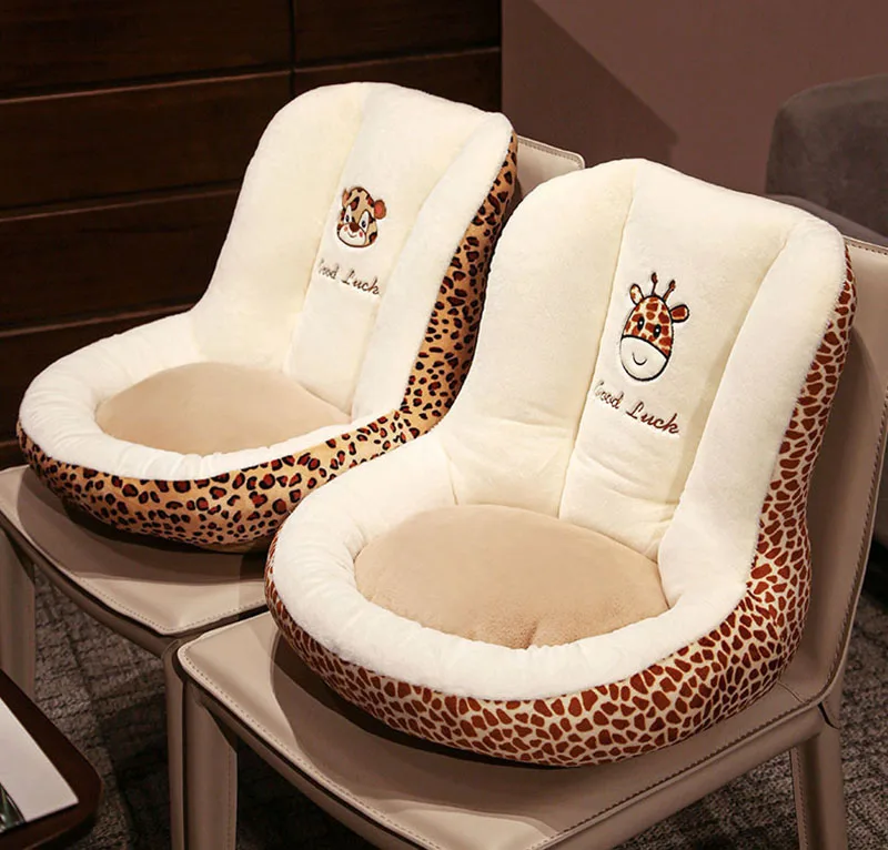 Leopard Print One-Piece Cushion with Backrest Velvet Seat Cushion for Office Bedroom Car Soft Sedentary Artifact for Hip Support