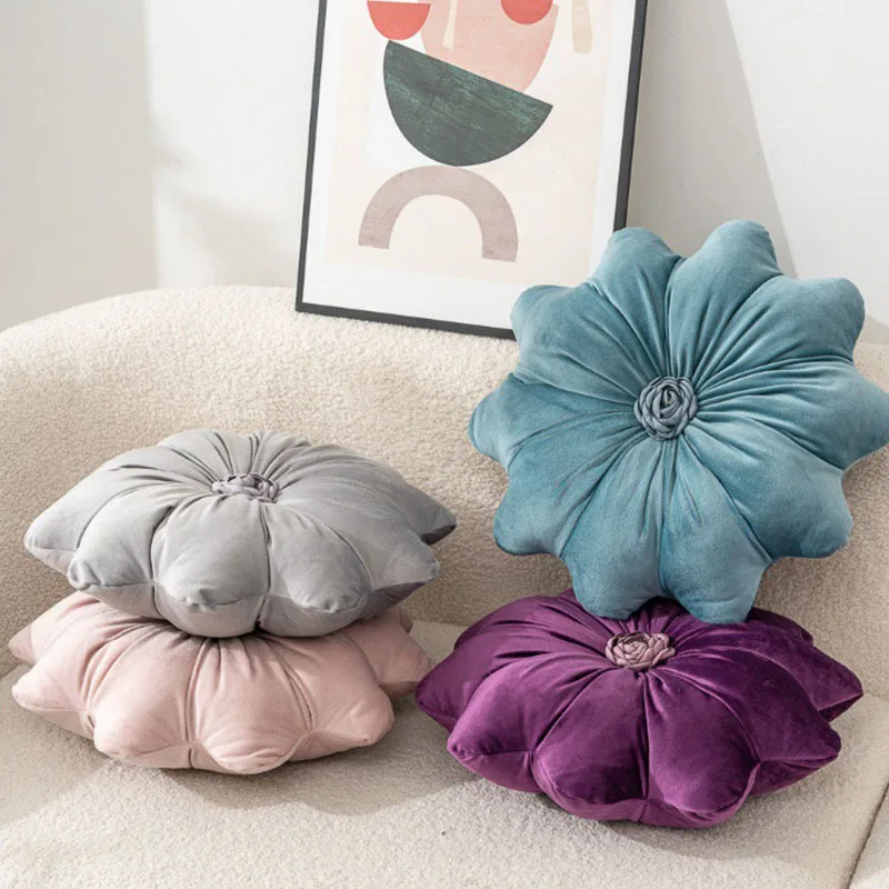 Nordic Solid Flannel Sunflower Body Pillow Flower Shaped Sleeping Back Cushion with Stamens Cozy Sofa Decoration for Home Hotels