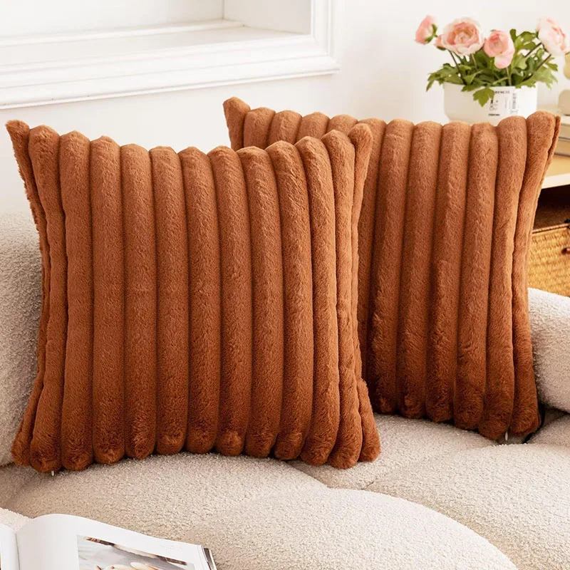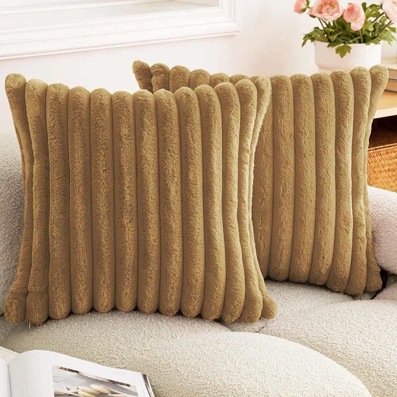 Plain Fuax Rabbit Hair Vertical Bar Pillowcase Nordic Soft Square Cushion Cover for Sofa Warm Pillow Cover for Autumn and Winter