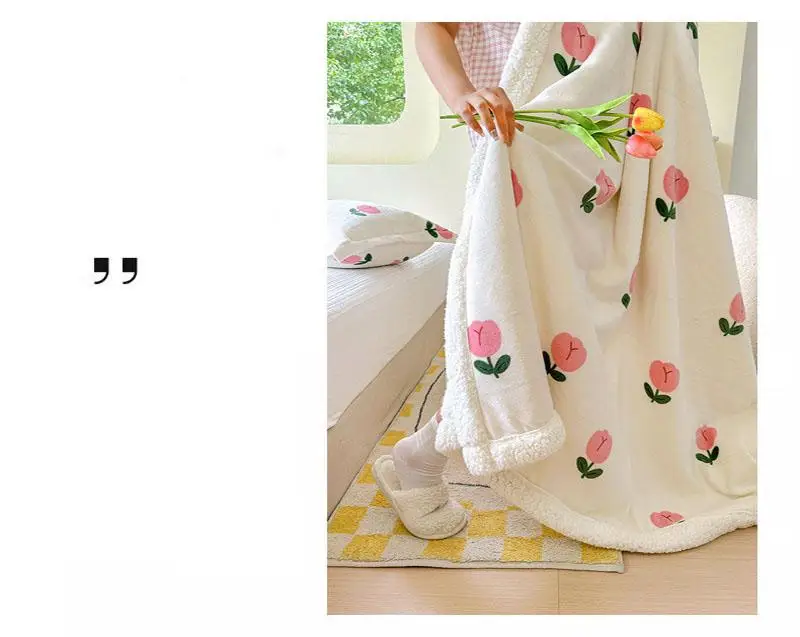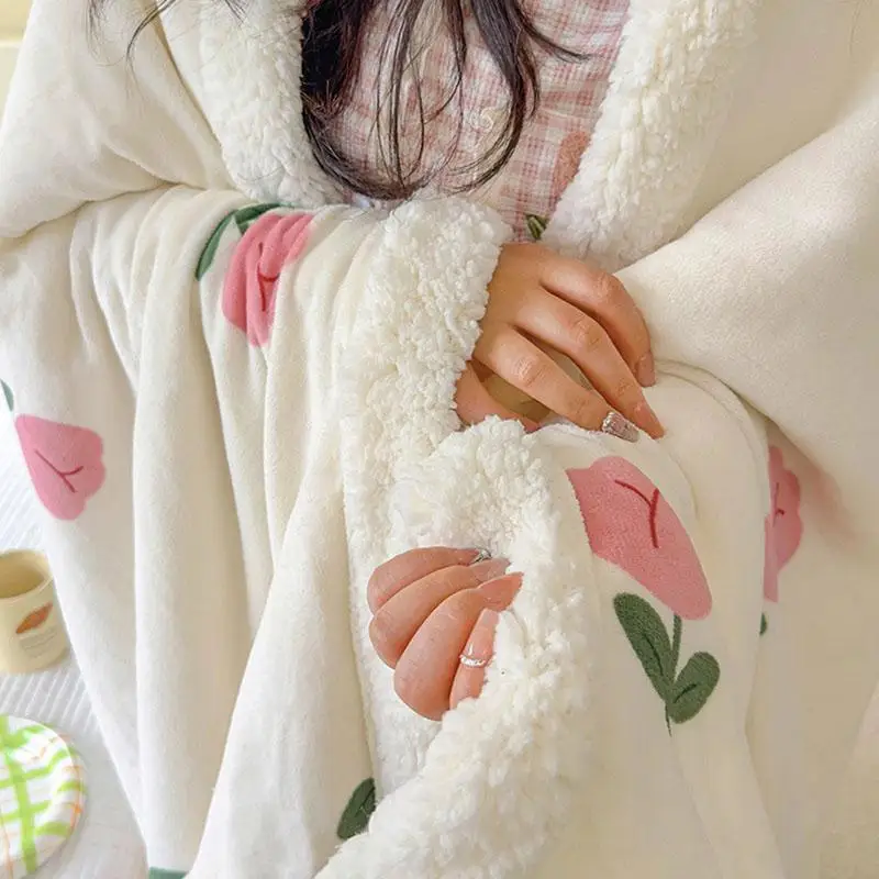 Winter Cartoon Printed Lamb Wool Blanket Thick and Warm Coral Fleece Blanket for Office Napping Fluffy Soft Plush Bedspread