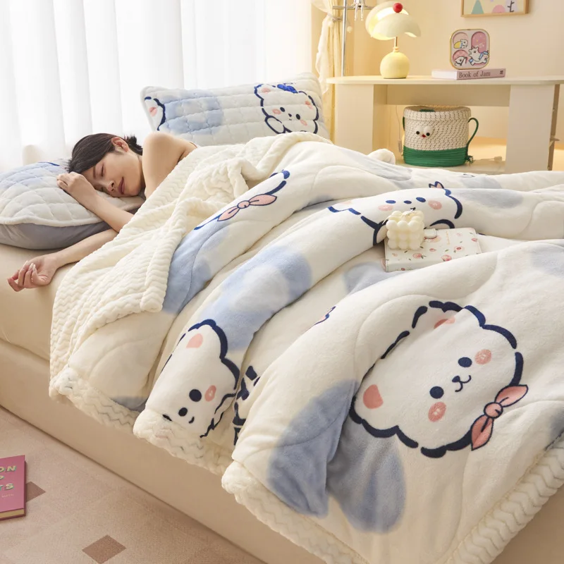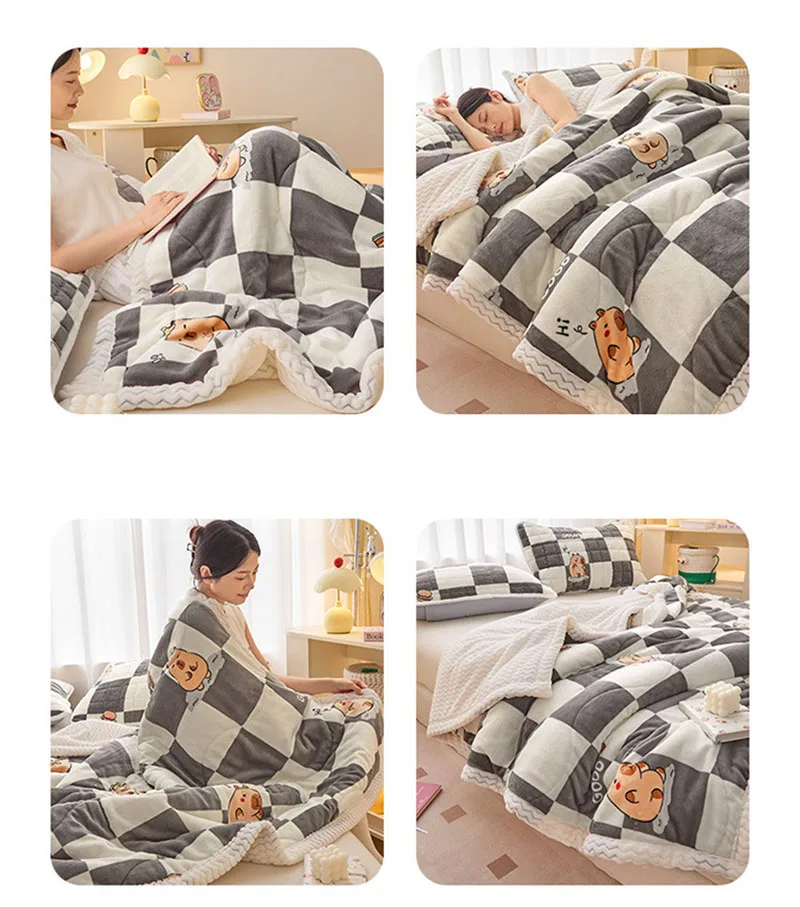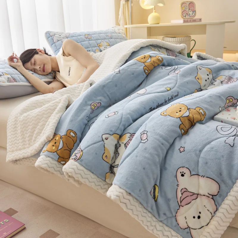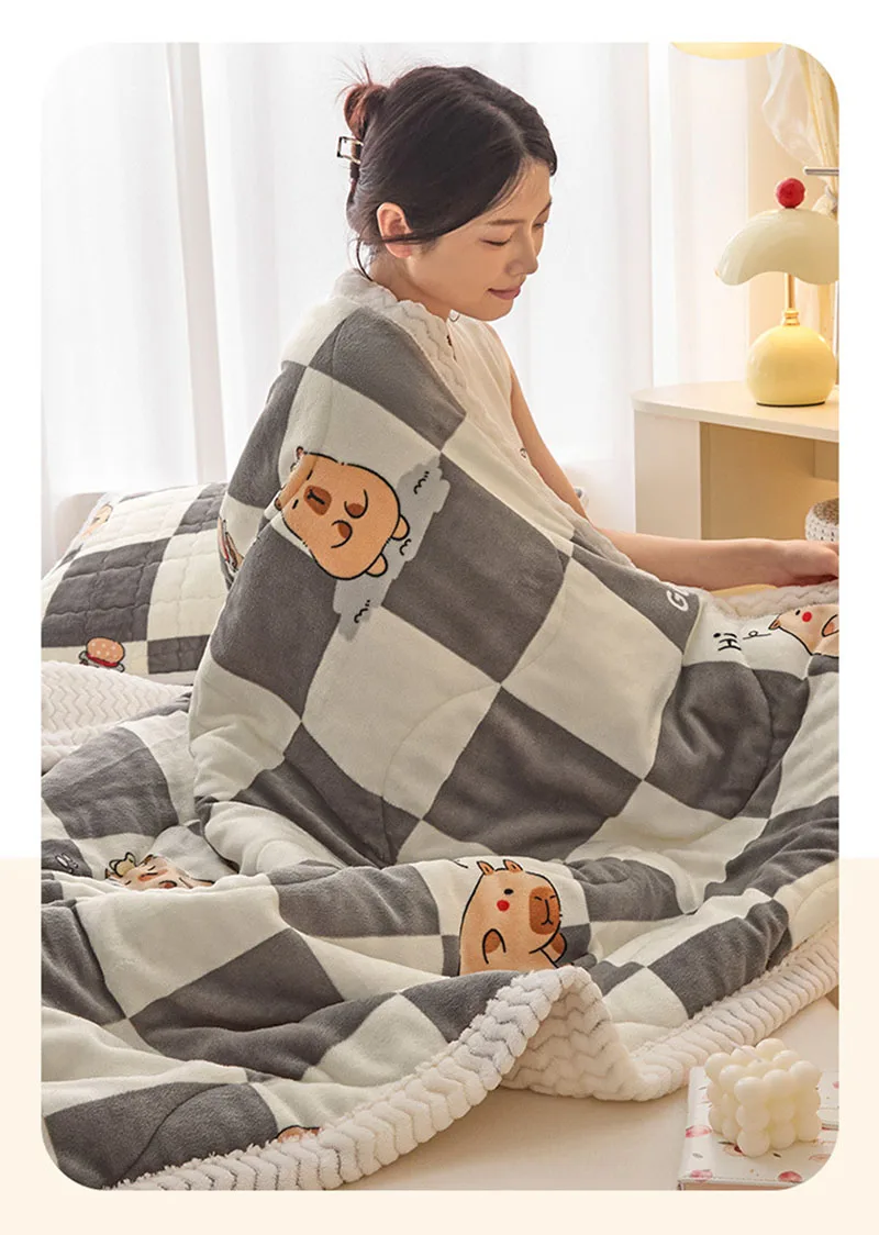 Winter Thick Three-Layer Quilted Blanket Milk Flannel Multifunctional Warm Blankets for Home Cartoon Printed Single Sofa Cover